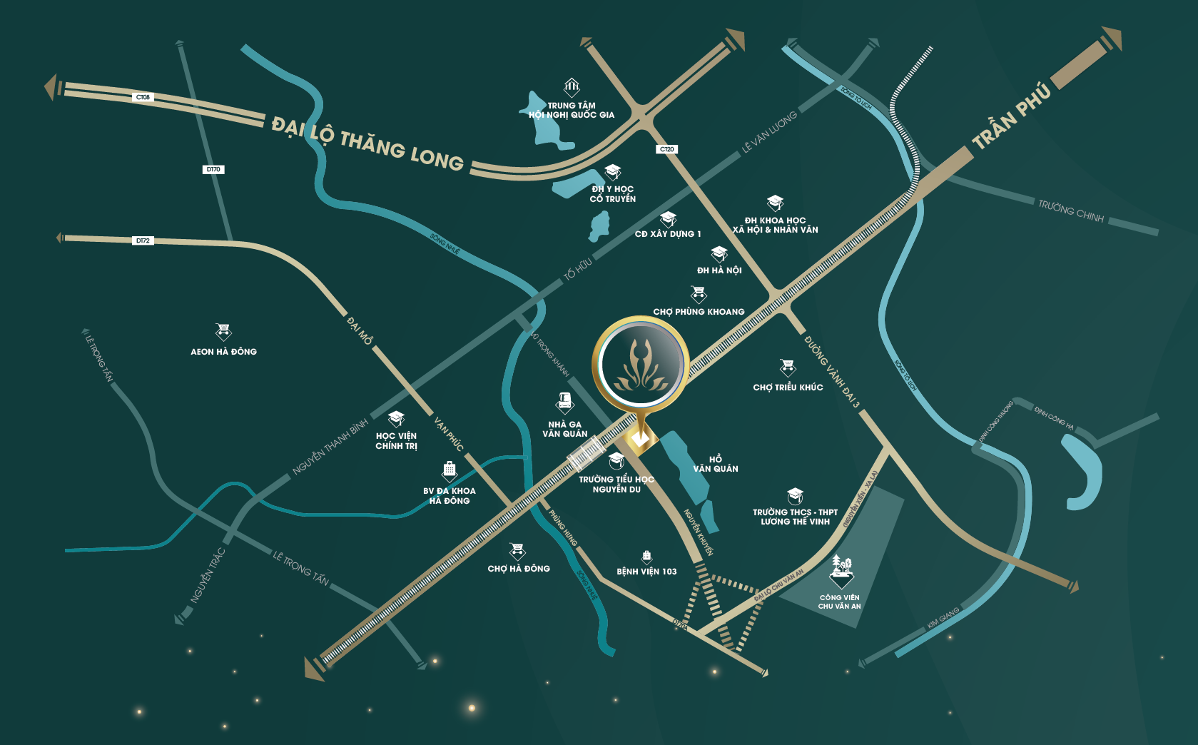 Dự án Grand Sunlake nằm ngay cửa ngõ Khu đô thị Văn Quán rộng 62ha – Khu đô thị hiện đại với hạ tầng hoàn thiện, vị trí đắc địa bậc nhất Quận Hà Đông.